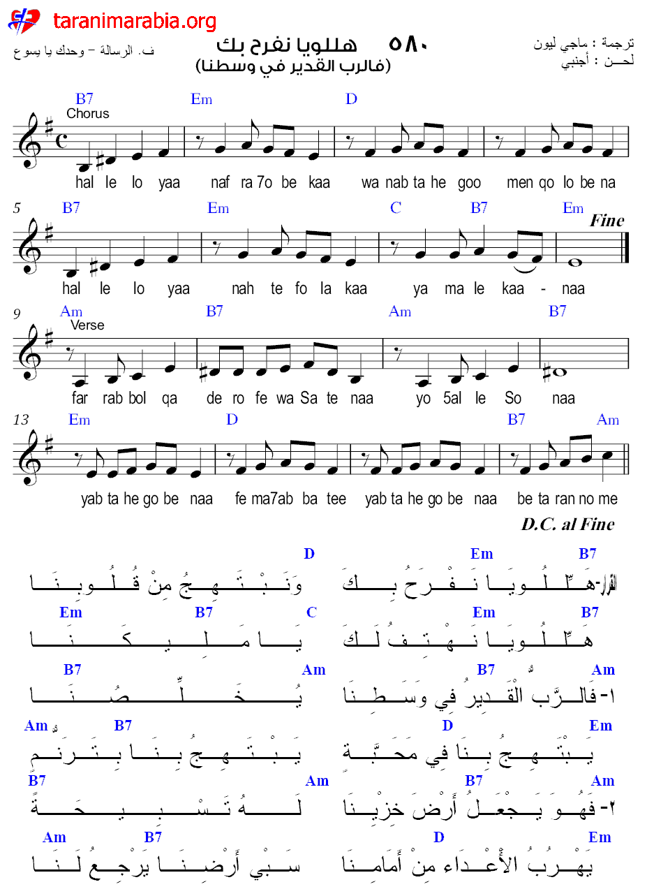 1- نفـرح بيـك نرفع ليك تسبيحنا وأغانيـنا عابرين بيـك وسط الضيق كل صعاب تأتينا